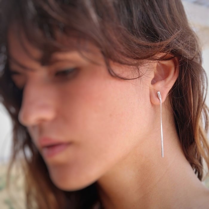 Long Ribbon Silver Earrings